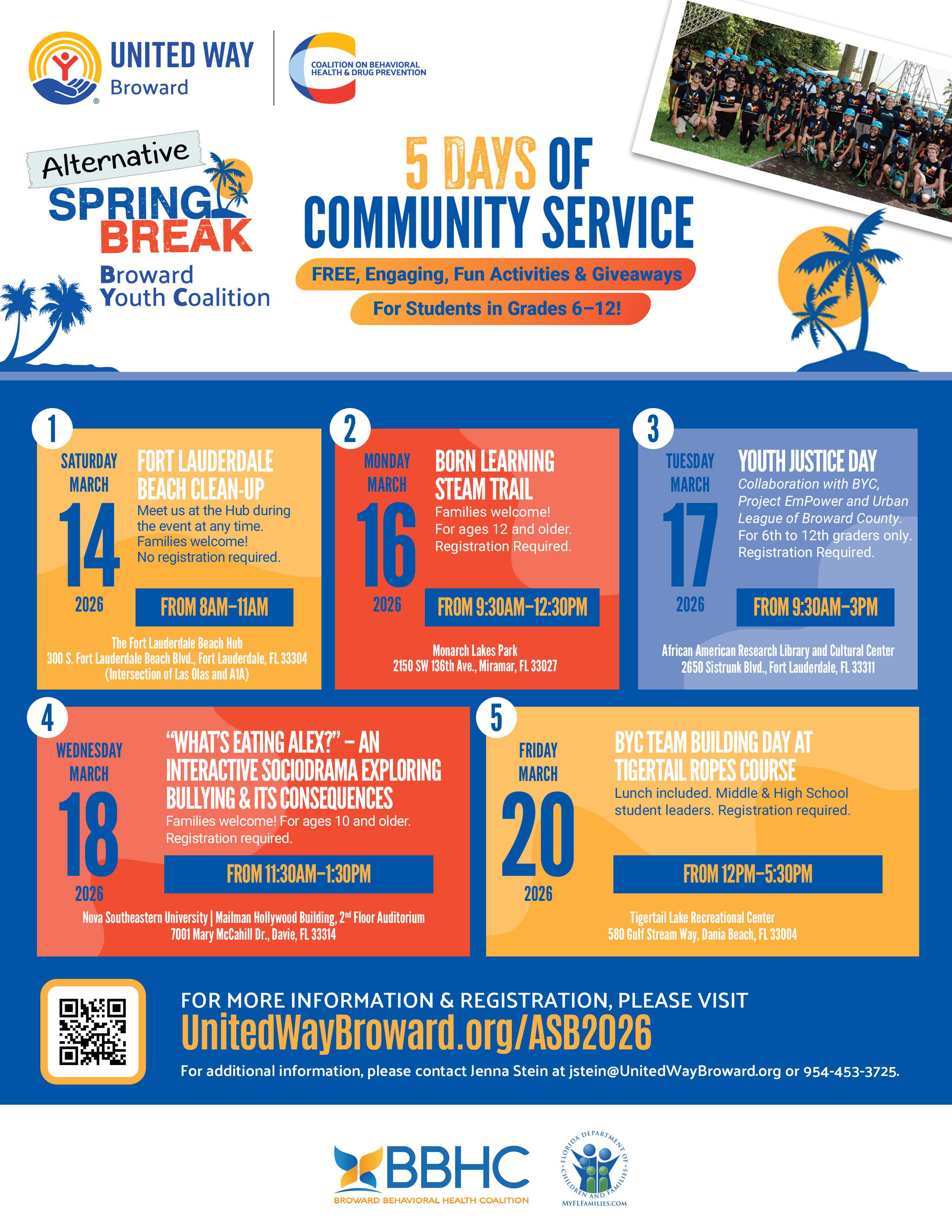 All FIVE Days, Broward High School Students will earn community service hours.